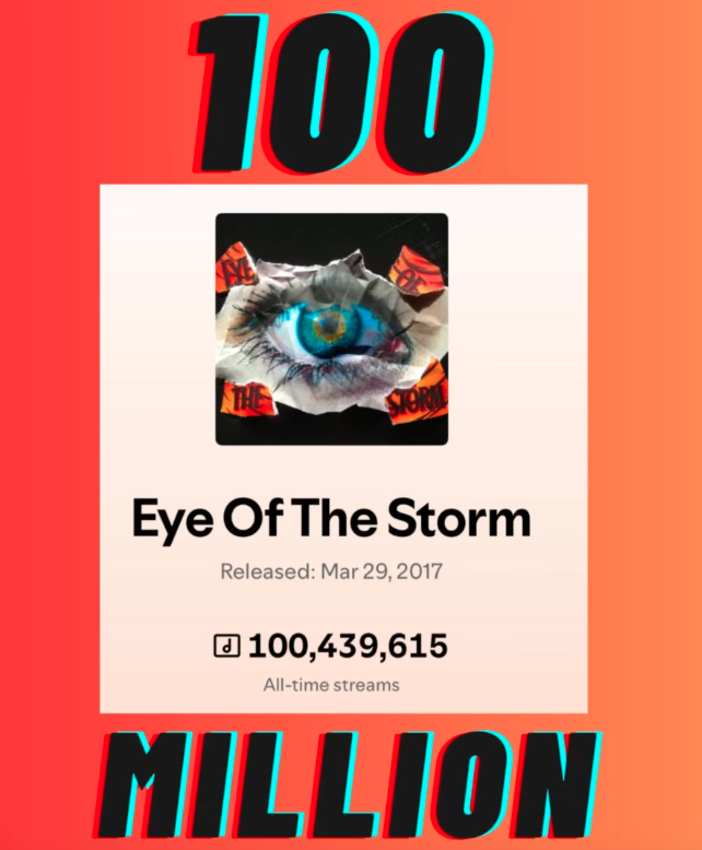 EYE OF THE STORM just crossed the 100 MILLION STREAMS threshold on Spotify. I continue to feel humbled and forever grateful to the listeners around the world who keep this song in rotation. I hope it can continue to inspire confidence in the face of chaos. THANK YOU!